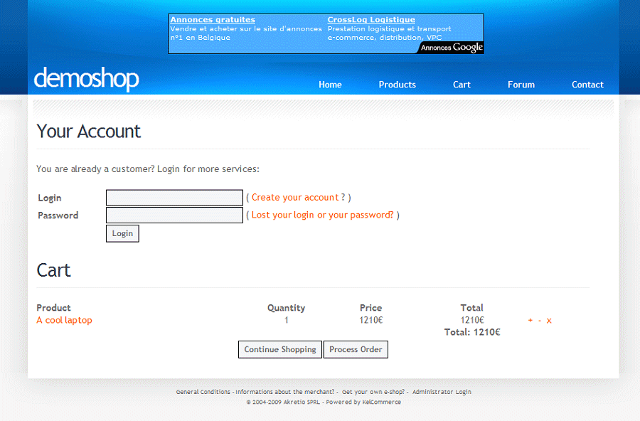 Now that he has products in its basket, he can either create an account if he thinks he will come back on the site, or buy directly without creating an account by clicking "Finish your order.